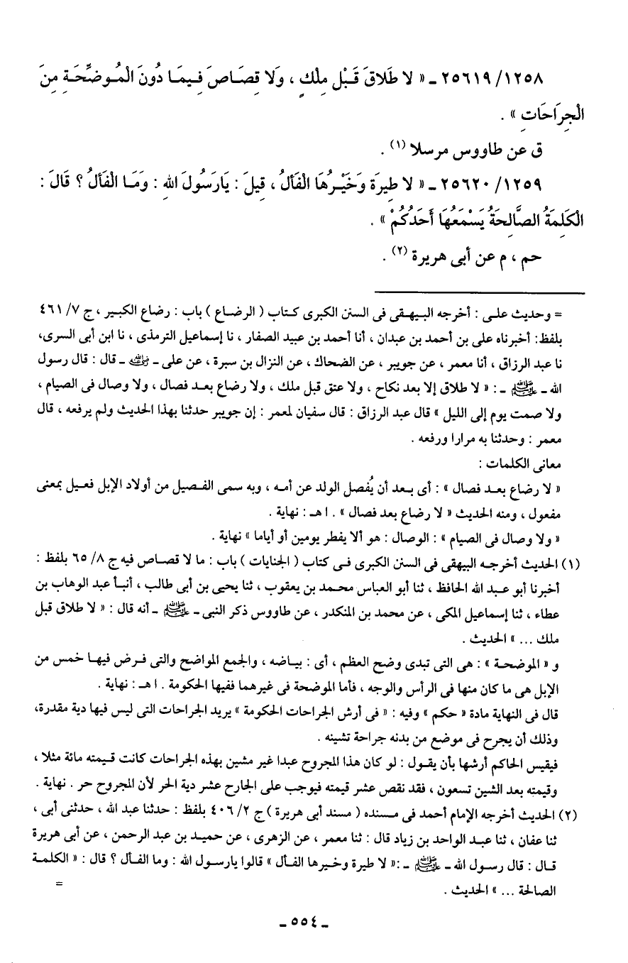 1258/ 25619 - "لا طَلاقَ قَبْل مِلكٍ، وَلا قِصَاصَ فِيمَا دُونَ المُوضِّحَةِ مِنَ الجِرَاحَاتِ".