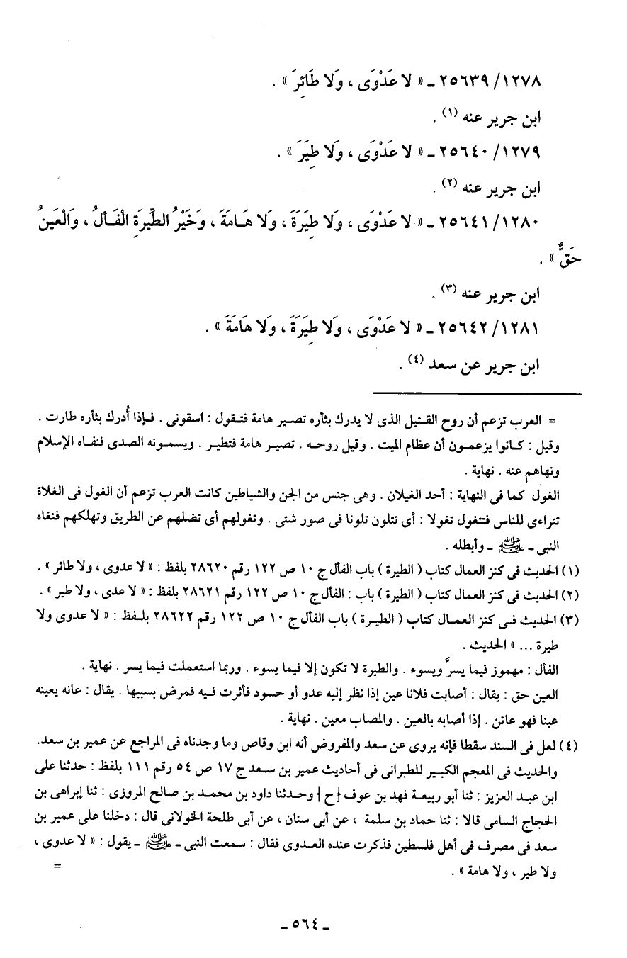 1281/ 25642 - "لا عَدْوَى، وَلا طِيَرَةَ، وَلا هَامَةَ".