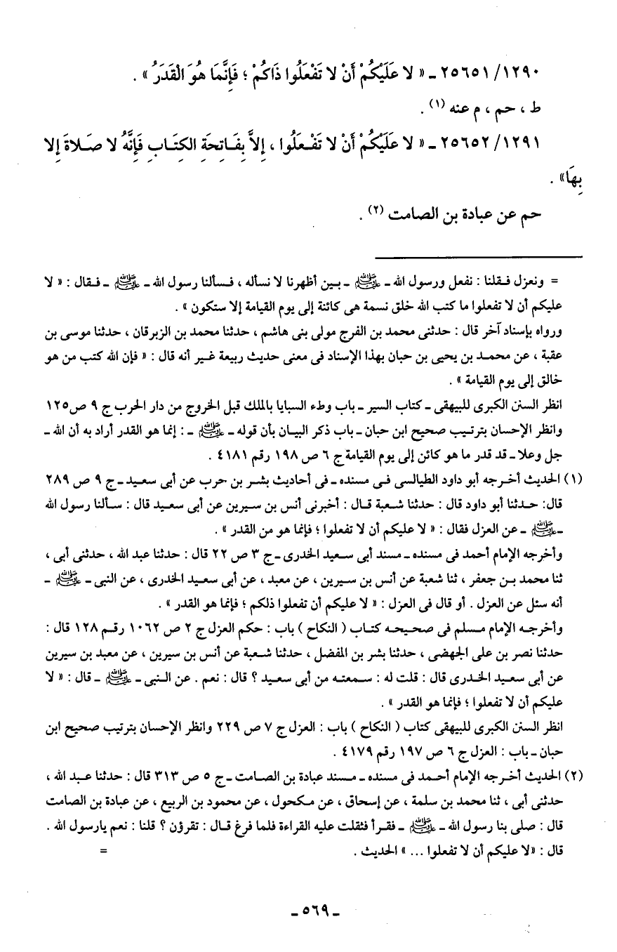 (¬1) الحديث أخرجه أبو داود الطيالسي في مسنده -في أحاديث بشر بن حرب عن أبي سعيد- ج 9 ص 289 قال: حدثنا أبو داود قال: حدثنا شعبة قال: أخبرني أنس بن سيرين عن أبي سعيد قال: سألنا رسول الله - صلى الله عليه وسلم - عن العزل فقال: "لا عليكم أن لا تفعلوا؟ فإنما هو من القدر".
