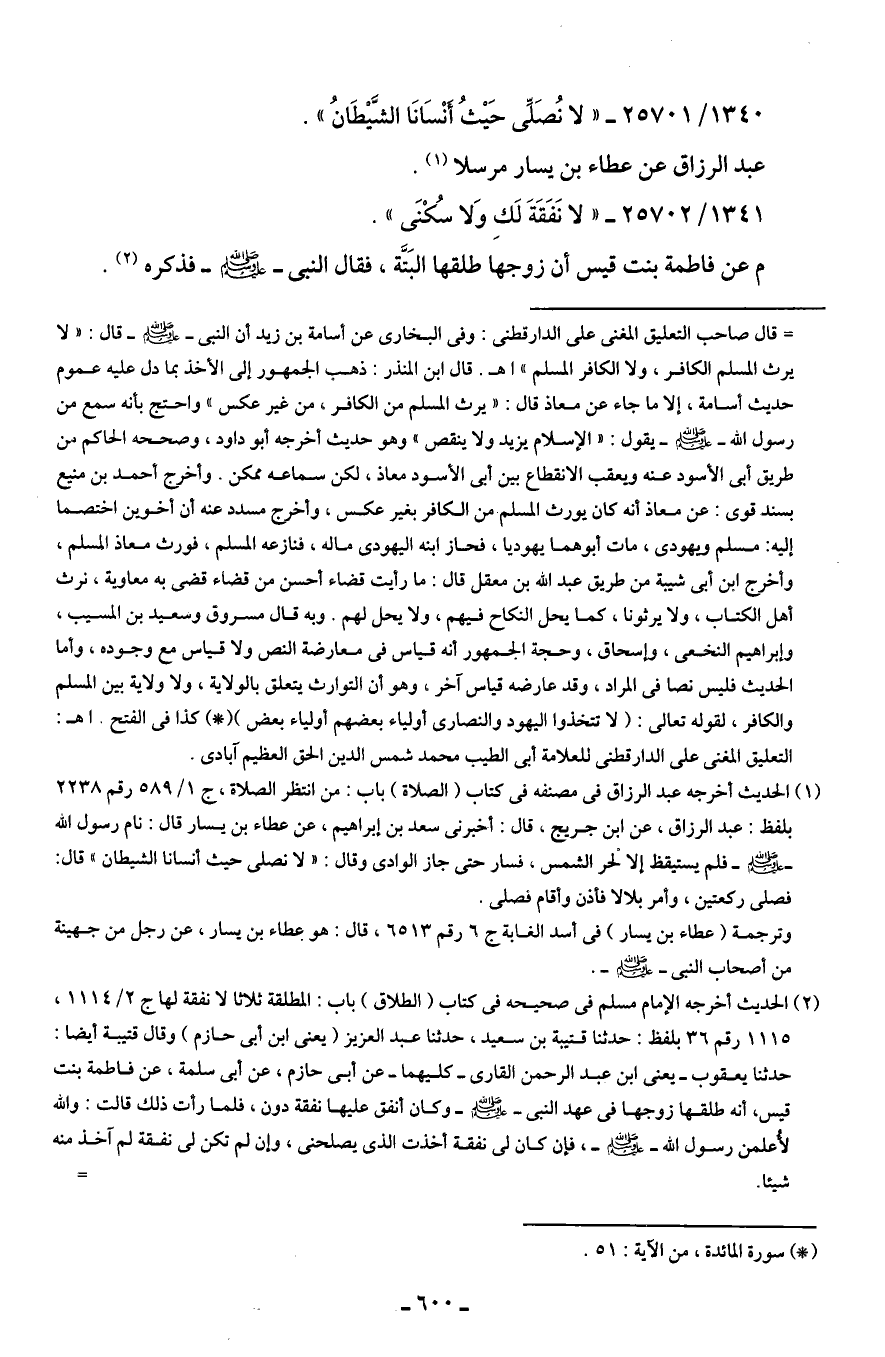 1341/ 25702 - "لا نَفَقَةَ لَكِ وَلا سُكْنَى".