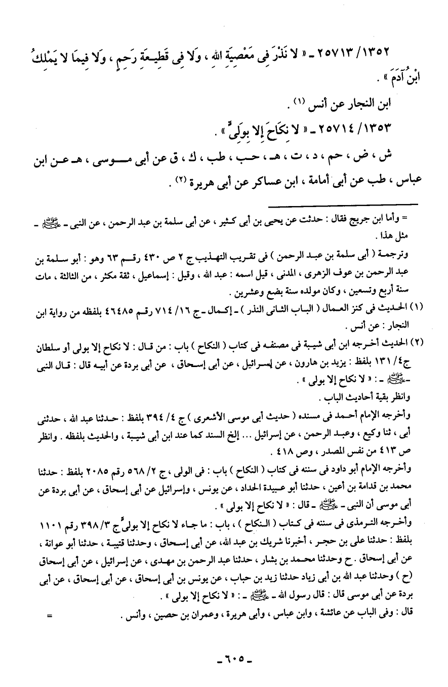 1353/ 25714 - "لا نِكَاحَ إِلا بِوَلِيٍّ".