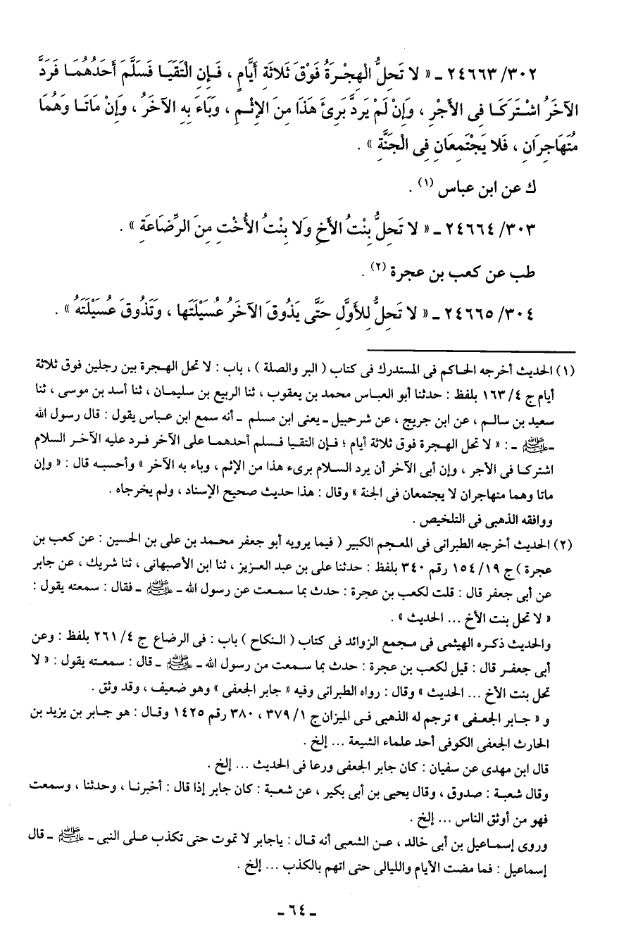303/ 24664 - "لا تَحِلُّ بِنْتُ الأخِ وَلا بِنْتُ الأخْتِ مِنَ الرِّضاعَةِ".