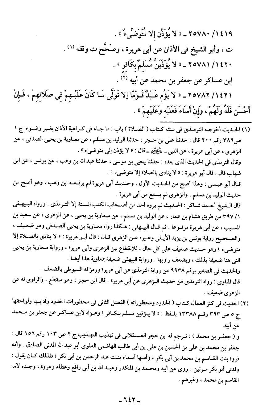 1419/ 25780 - "لا يُؤَذِّن إِلا مُتَوَضِّيءٌ".