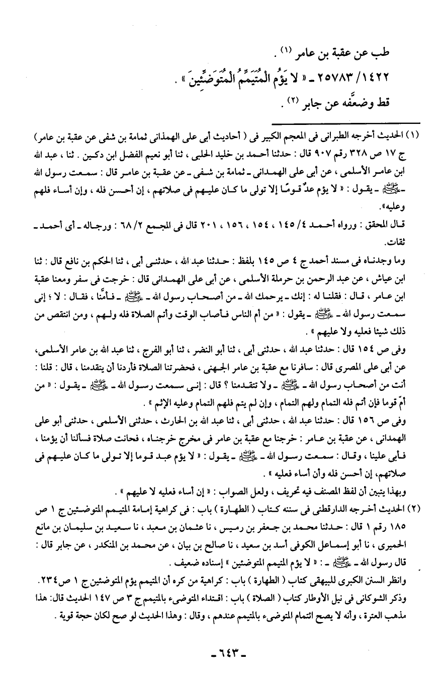 1422/ 25783 - "لا يَؤُم الْمُتَيَمِّمُ الْمُتَوَضِّئينَ".