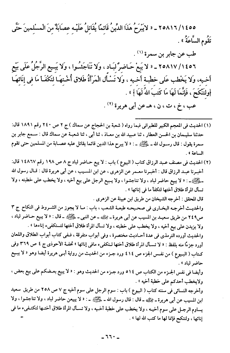وأيضًا في نفس الجزء من الكتاب ص 514 ورد جزء من الحديث وهو: "لا يبيع بعضكم على بيع بعض، ولا يخطب أحدكم على خطبة أخيه".