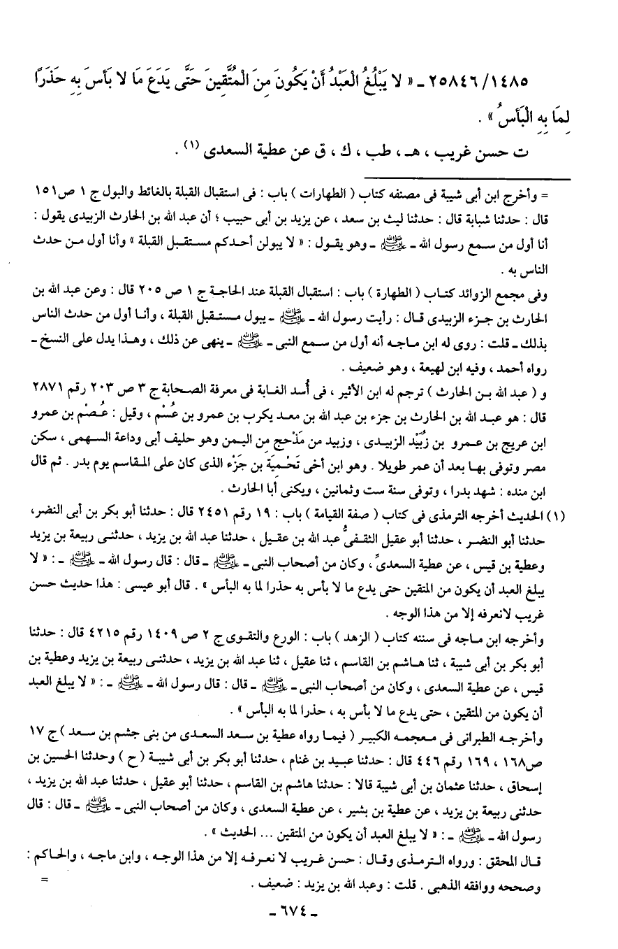 ت حسن غريب، هـ، ط، ك، ق عن عطية السعدي (¬1).