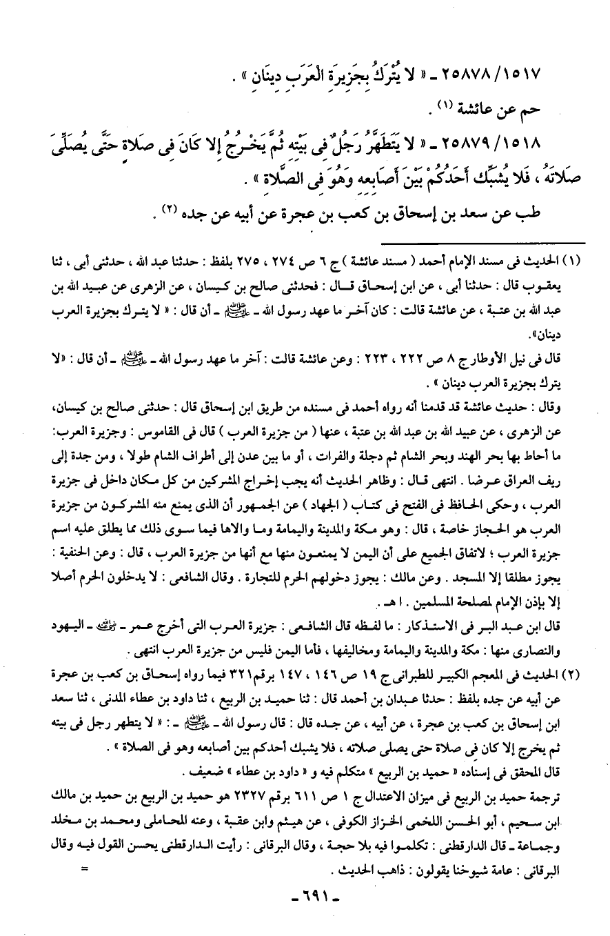 1517/ 25878 - "لا يترَكُ بِجَزِيرَةِ الْعَرَبِ دِينَانِ".