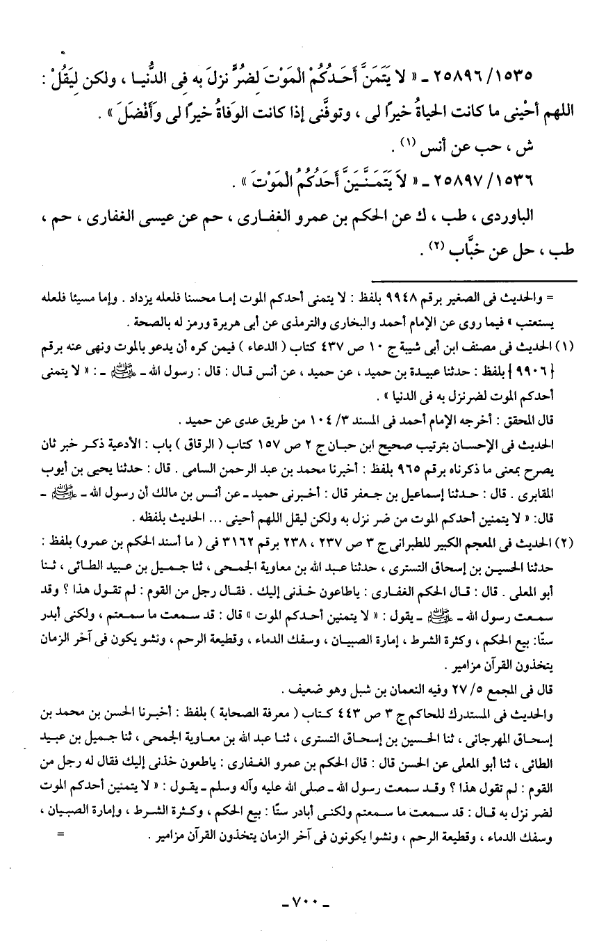 1536/ 25897 - "لَا يَتَمَنَّيَنَّ أحَدُكُمُ الْمَوْتَ".