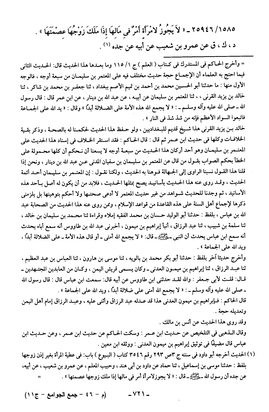 1585/ 25946 - "لَا يَجُوزُ لامْرَأَةٍ أَمْرٌ في مَالِهَا إِذَا مَلَكَ زَوْجُهَا عِصمَتَهَا".