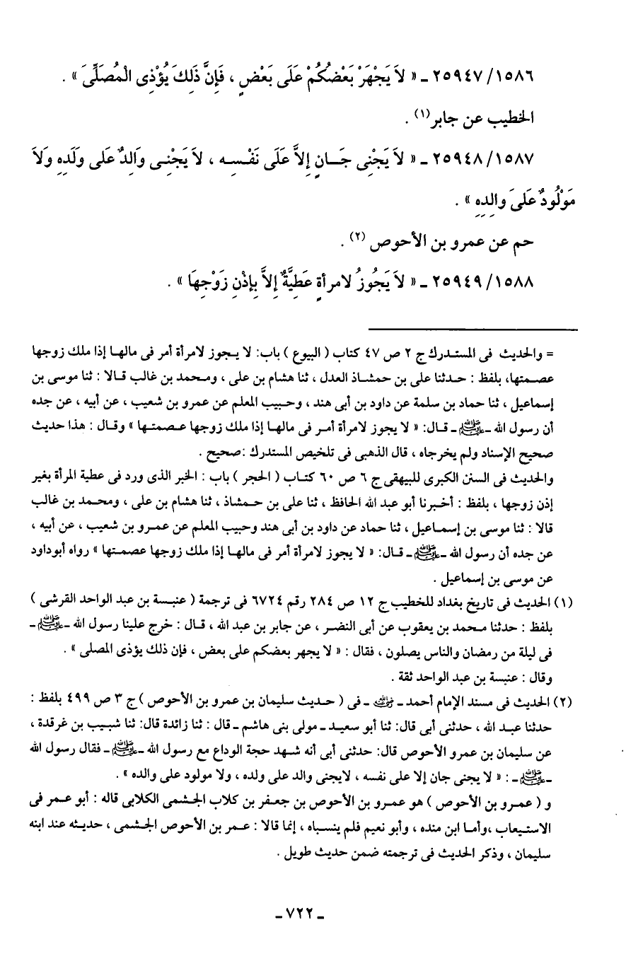 1588/ 25949 - "لَا يَجُوزُ لامرأةٍ عَطِيَّةٌ إِلَّا بِإذْنِ زَوْجِهَا".