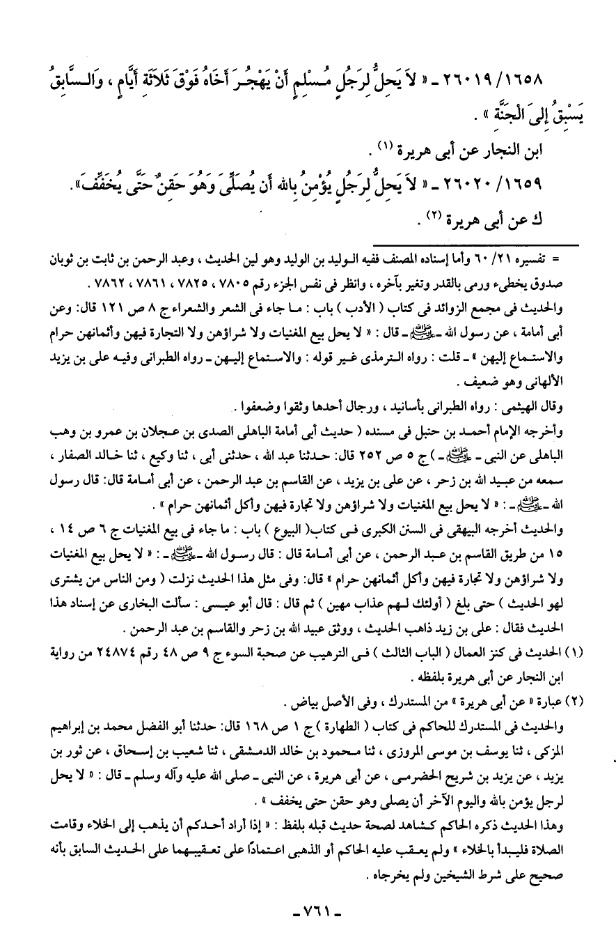 1658/ 26019 - "لَا يَحِلُّ لِرَجُلٍ مُسْلِمٍ أنْ يَهْجُرَ أخَاهُ فَوْقَ ثَلاثَةِ أيَّامٍ، وَالسَّابِقُ يَسْبِقُ إِلى الْجَنَّةِ".