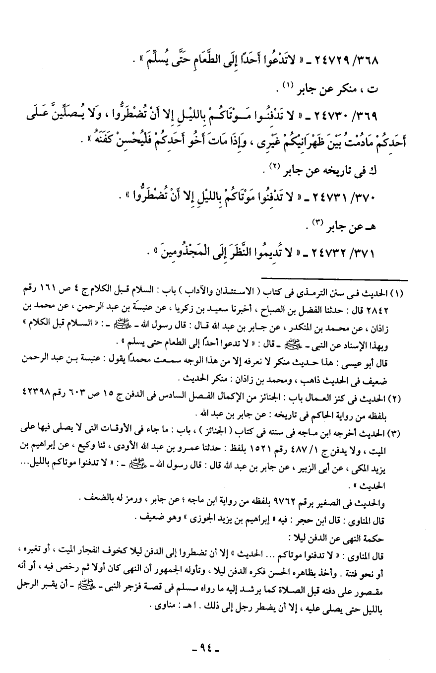 370/ 24731 - "لا تَدْفِنُوا مَوْتَاكُمْ بِالليلِ إِلا أَنْ تُضْطَرُّوا".