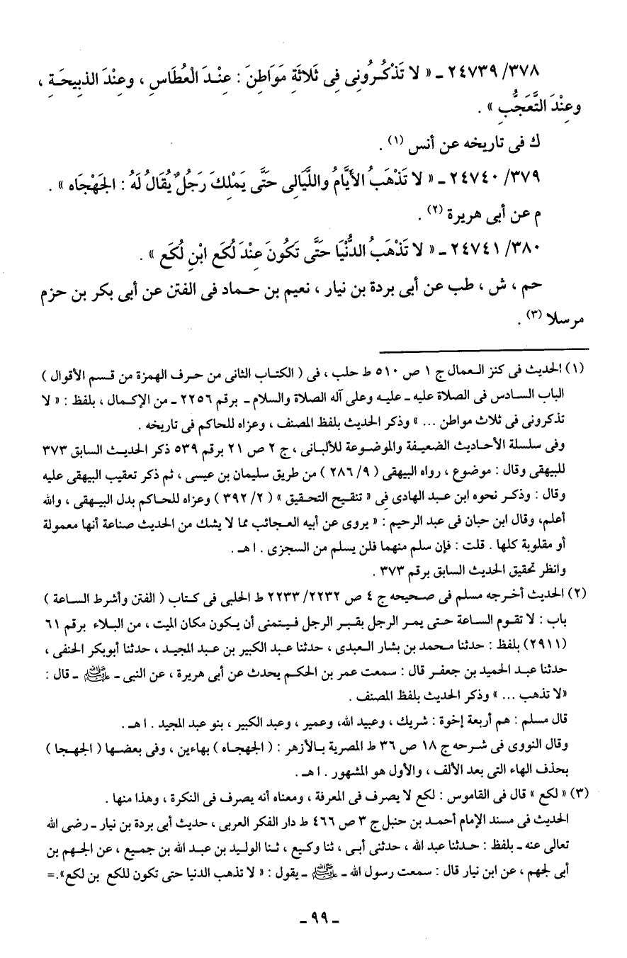 379/ 24740 - "لا تَذْهَبُ الأيَّامُ واللّيَالِي حَتَّى يَمْلِكَ رَجُلٌ يُقَالُ لَهُ: الجَهْجَاه".