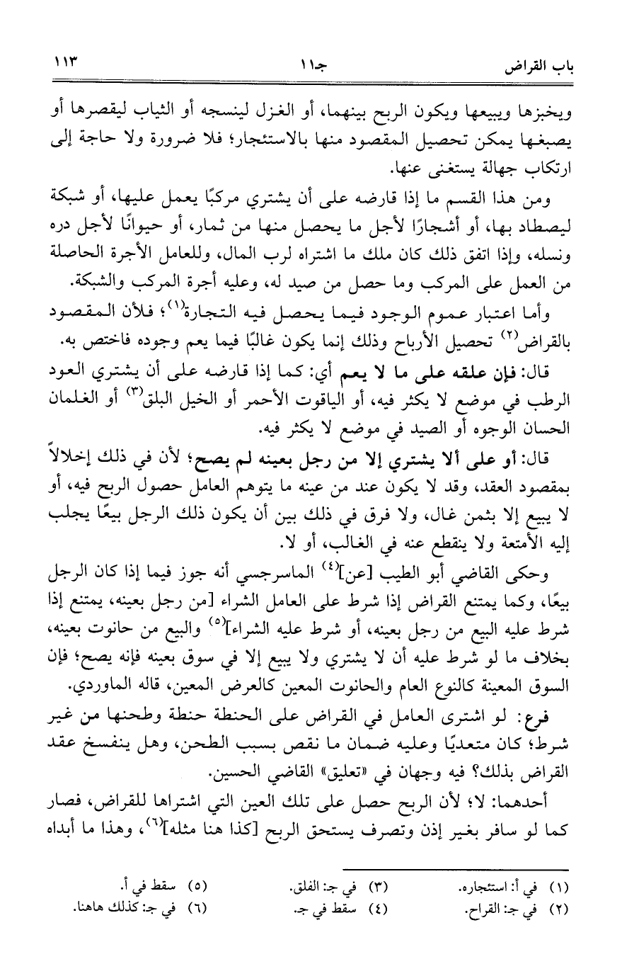 قال: فإن علقه على ما لا يعم أي: كما إذا قارضه على أن يشتري العود الرطب في موضع لا يكثر فيه، أو الياقوت الأحمر أو الخيل البلق أو الغلمان الحسان الوجوه أو الصيد في موضع لا يكثر فيه.