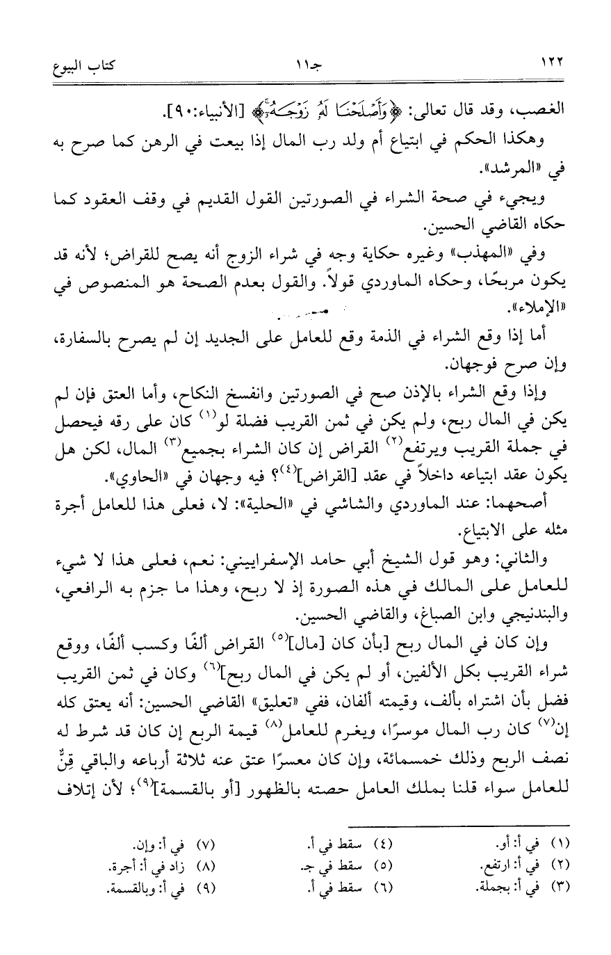 وفي "المهذب" وغيره حكاية وجه في شراء الزوج أنه يصح للقراض؛ لأنه قد يكون مربحاً، وحكاه الماوردي قولاً. والقول بعدم الصحة هو المنصوص في "الإملاء".
