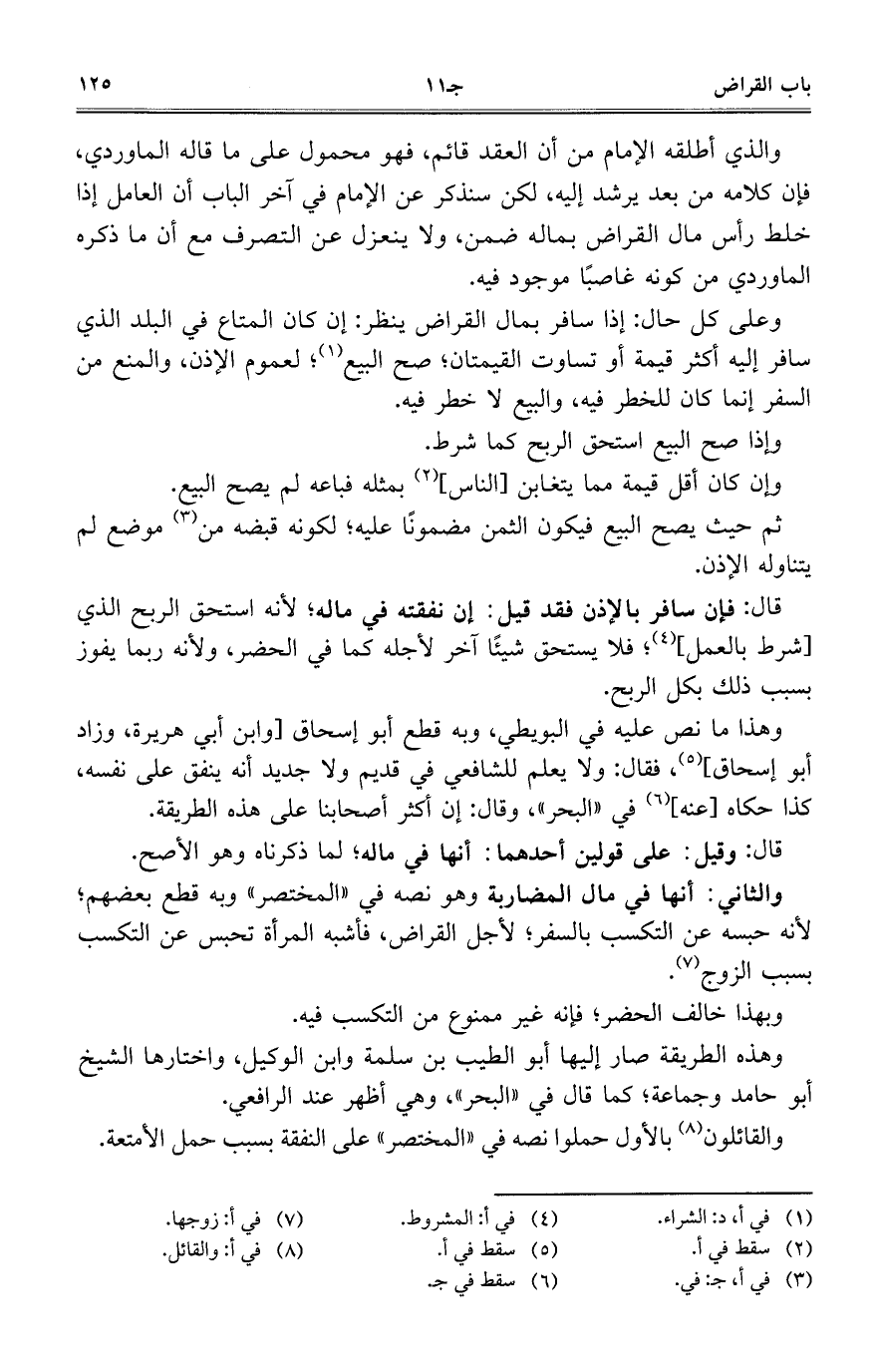 والقائلون بالأول حملوا نصه في "المختصر" على النفقة بسبب حمل الأمتعة.