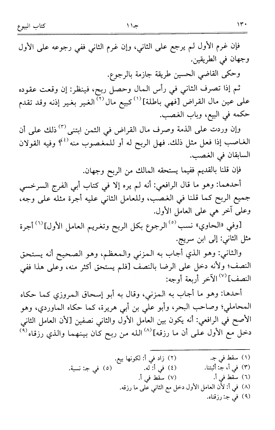 أحدها: وهو ما أجاب به المزني، وقال به أبو إسحاق المروزي كما حكاه المحاملي؛ وصاحب البحر، وأبو علي بن أبي هريرة، كما حكاه الماوردي، وهو الأصح في الرافعي: أنه يكون بين العامل الأول والثاني نصفين [لأن العامل الثاني دخل مع الأول على أن ما رزقه] الله من ربح كان بينهما والذي رزقاه