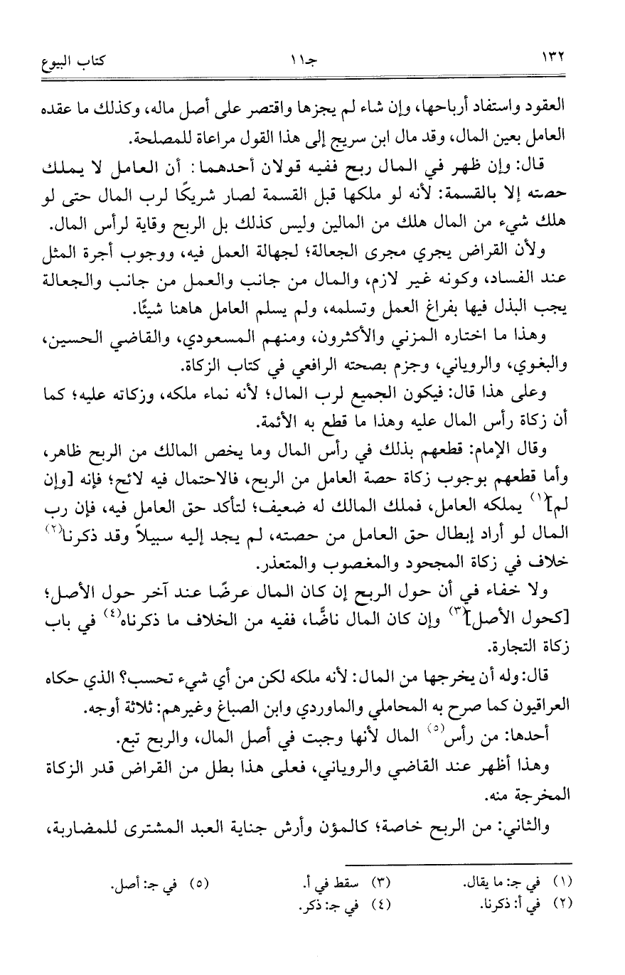وقال الإمام: قطعهم بذلك في رأس المال وما يخص المالك من الربح ظاهر، وأما قطعهم بوجوب زكاة حصة العامل من الربح، فالاحتمال فيه لائح؛ فإنه [وإن لم] يملكه العامل، فملك المالك له ضعيف؛ لتأكد حق العامل فيه، فإن رب المال لو أراد إبطال حق العامل من حصته، لم يجد إليه سبيلاً وقد ذكرنا خلاف في زكاة المجحود والمغصوب والمتعذر.
