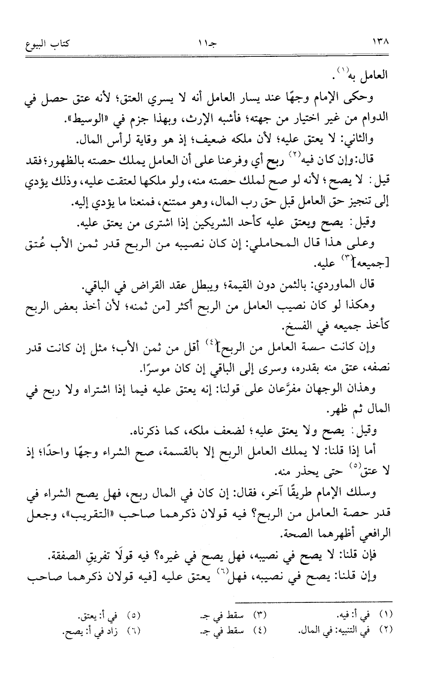وسلك الإمام طريقاً آخر، فقال: إن كان في المال ربح، فهل يصح الشراء في قدر حصة العامل من الربح؟ فيه قولان ذكرهما صاحب "التقريب" وجعل الرافعي أظهرهما الصحة.