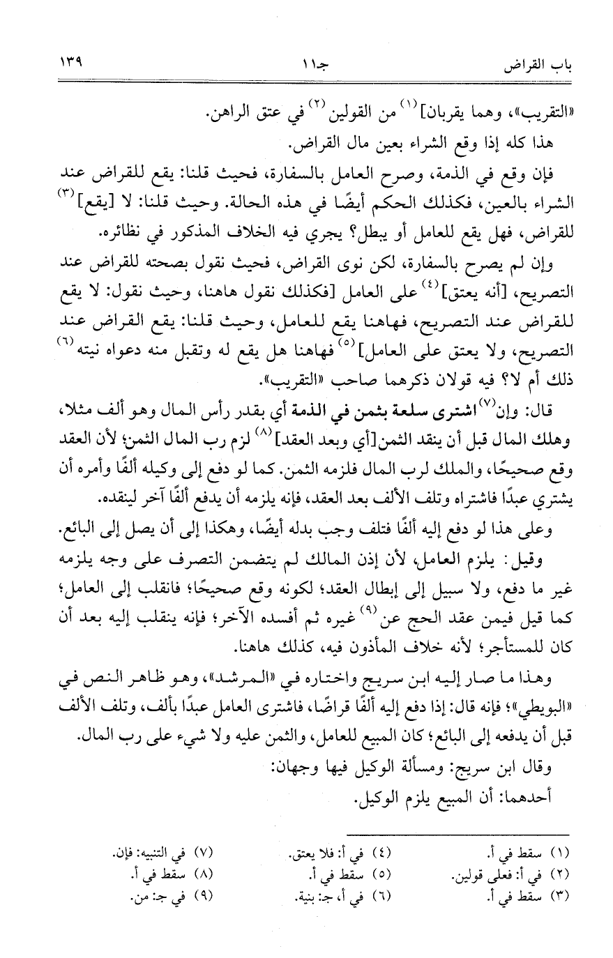 هذا كله إذا وقع الشراء بعين مال القراض.