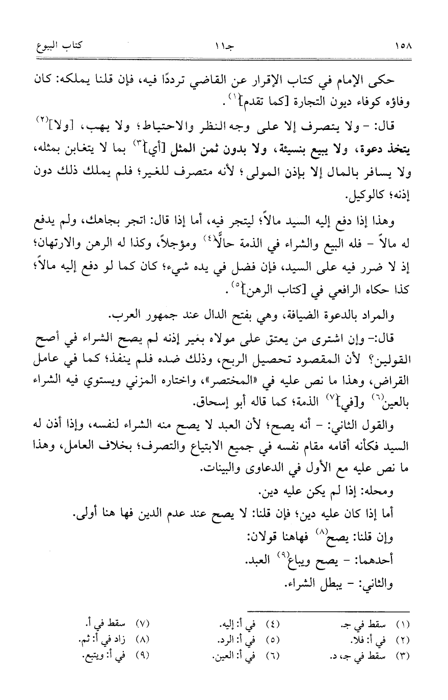 قال: ولا يتصرف إلا على وجه النظر والاحتياط؛ ولا يهب، [ولا] يتخذ دعوة، ولا يبيع بنسيئة، ولا بدون ثمن المثل [أي] بما لا يتغابن بمثله، ولا يسافر بالمال إلا بإذن المولى؛ لأنه متصرف للغير؛ فلم يملك ذلك دون إذنه؛ كالوكيل.