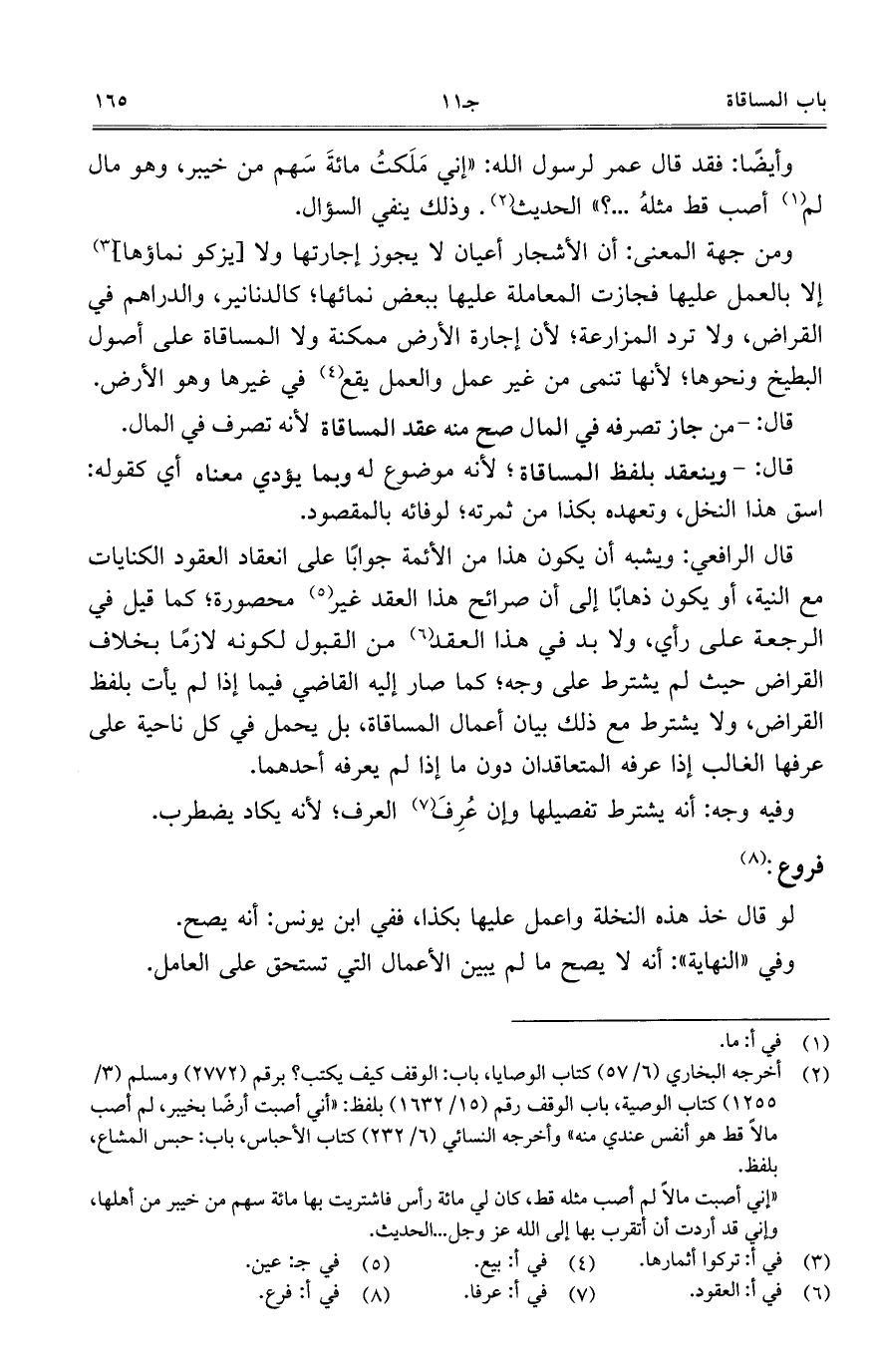 قال الرافعي: ويشبه أن يكون هذا من الأئمة جواباً على انعقاد العقود الكنايات مع النية، أو يكون ذهاباً إلى أن صرائح هذا العقد غير محصورة؛ كما قيل في الرجعة على رأي، ولا بد في هذا العقد من القبول لكونه لازماً بخلاف القراض حيث لم يشترط على وجه؛ كما صار إليه القاضي فيما إذا لم يأت بلفظ القراض، ولا يشترط مع ذلك بيان أعمال المساقاة، بل يحمل في كل ناحية على عرفها الغالب إذا عرفه المتعاقدان دون ما إذا لم يعرفه أحدهما.