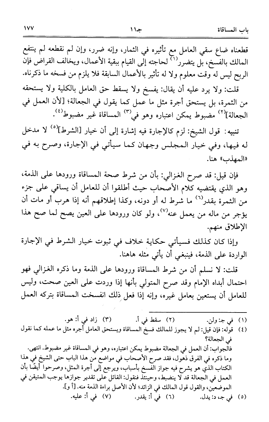 قلت: ولا يرد عليه أن يقال: يفسخ ولا يسقط حق العالم بالكلية ولا يستحقه من الثمرة، بل يستحق أجرة مثل ما عمل كما يقول في الجعالة؛ [لأن العمل في الجعالة] مضبوط يمكن اعتباره وهو في المساقاة غير مضبوط.