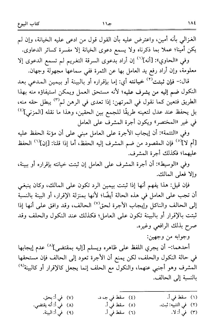 الغزالي بأنه أمين، واعترض عليه بأن القول قول من ادعى عليه الخيانة، وإن لم يكن أميناً؛ عملا بما ذكرناه ولا يسمع دعوى الخيانة إلا مفسرة كسائر الدعاوى.
