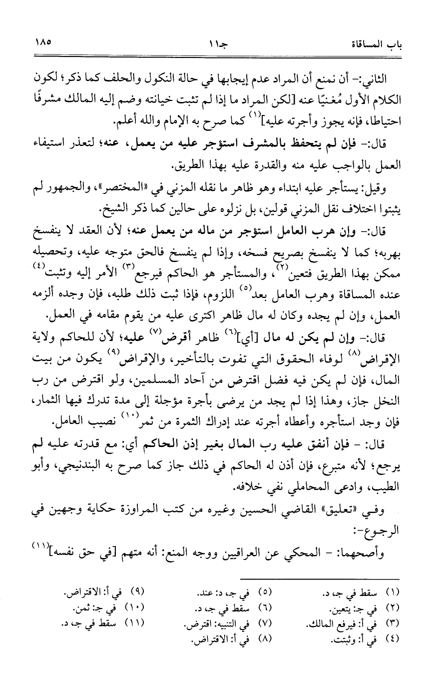 قال: وإن لم يكن له مال [أي] ظاهر أقرض عليه؛ لأن للحاكم ولاية الإقراض لوفاء الحقوق التي تفوت بالتأخير، والإقراض يكون من بيت المال، فإن لم يكن فيه فضل اقترض من آحاد المسلمين، ولو اقترض من رب النخل جاز، وهذا إذا لم يجد من يرضى بأجرة مؤجلة إلى مدة تدرك فيها الثمار، فإن وجد استأجره وأعطاه أجرته عند إدراك الثمرة من ثمر نصيب العامل.
