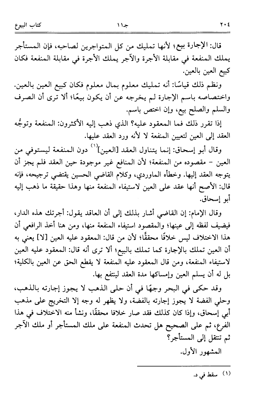 وقال أبو إسحاق: إنما يتناول العقد [العين] دن المنفعة ليستوفي من العين- مقصوده من المنفعة؛ لأن المنافع غير موجودة حين العقد فلم يجز أن يتوجه العقد إليها. وخطأه الماوردي، وكلام القاضي الحسين يقتضي ترجيحه، فإنه قال: الأصح أنها عقد على العين لاستيفاء المنفعة منها وهذا حقيقة ما ذهب إليه أبو إسحاق.