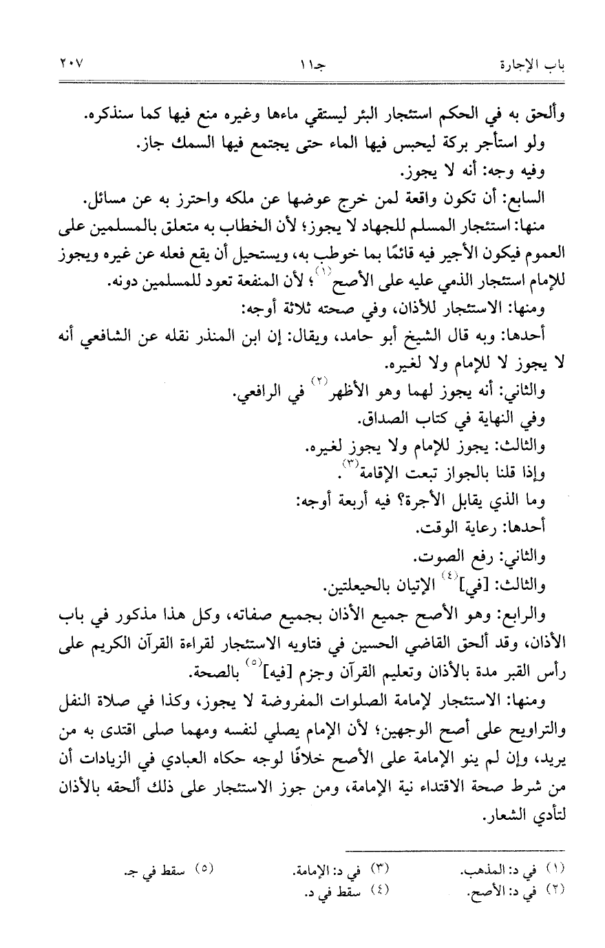 ومنها: الاستئجار للأذان، وفي صحته ثلاثة أوجه: