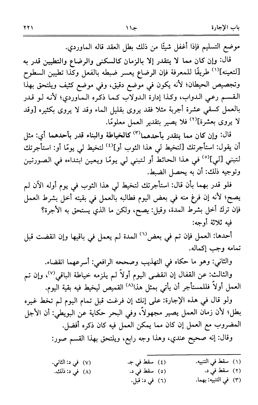 قال: وإن كان مما لا يتقدر إلا بالزمان كالسكنى والرضاع والتطيين قدر به [لتعينه] طريقاً للمعرفة فإن الرضاع يعسر ضبطه بالفعل وكذا تطيين السطوح وتجصيص الحيطان؛ لأنه يكون في موضع دقيق، وفي موضع كثيف ويلتحق بهذا القسم رعي الدواب، وكذا إدارة الدولاب كما ذكره الماوردي؛ لأنه لو قدر بالعمل كسقي عشرة أجربة مثلاً فقد يروى بقليل الماء وقد لا يروى بكثيره [وقد لا يروى بعشرة] فلا يصير بتقدير العمل معلوماً.