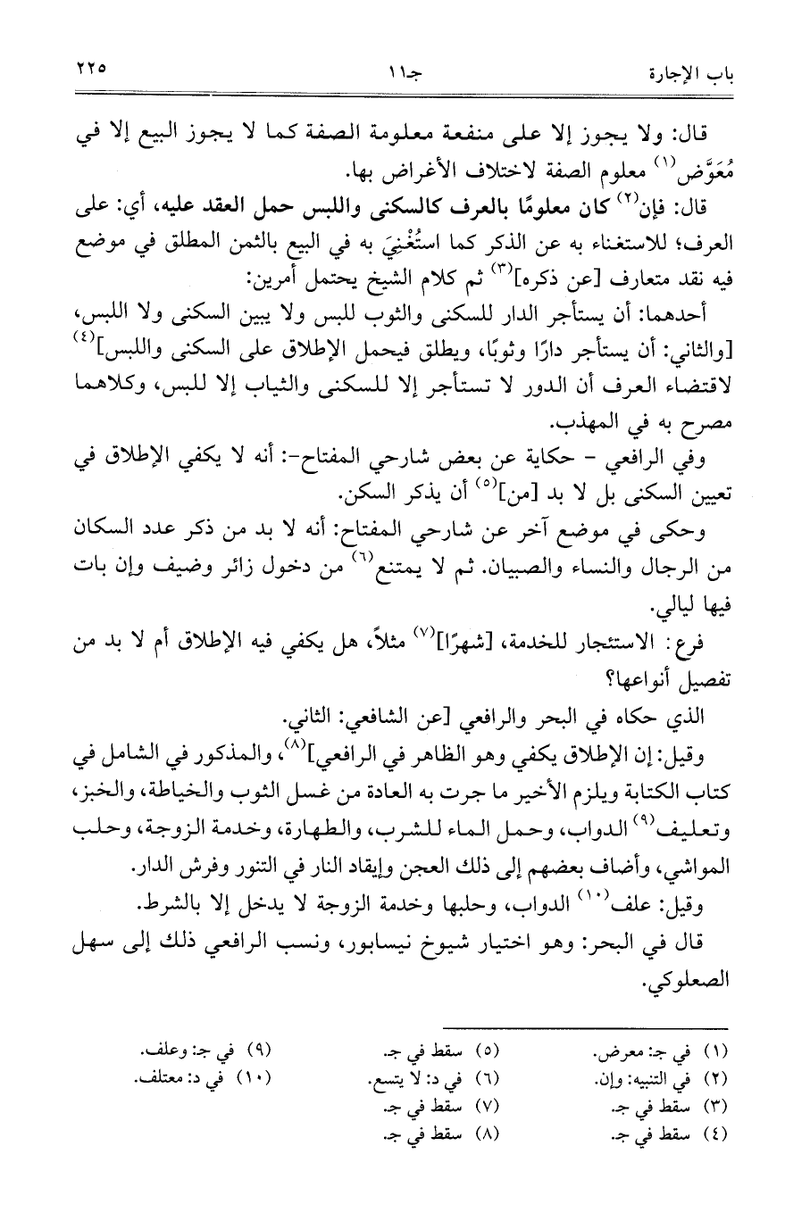 وفي الرافعي- حكاية عن بعض شارحي المفتاح: أنه لا يكفي الإطلاق في تعيين السكنى بل لا بد [من] أني ذكر السكن.