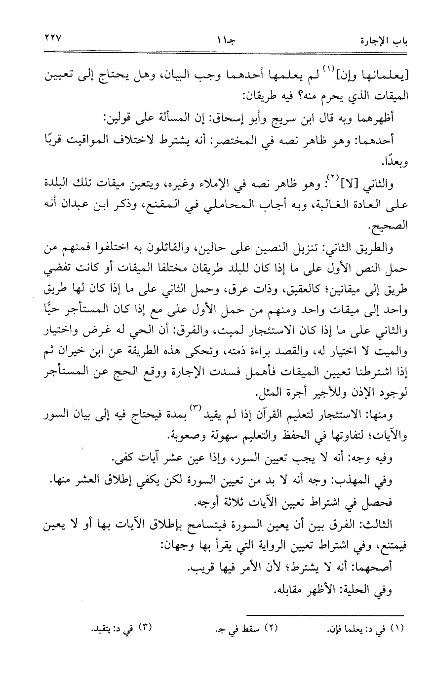 ومنها: الاستئجار لتعليم القرآن إذا لم يقيد بمدة فيحتاج فيه إلى بيان السور والآيات؛ لتفاوتها في الحفظ والتعليم سهولة وصعوبة.