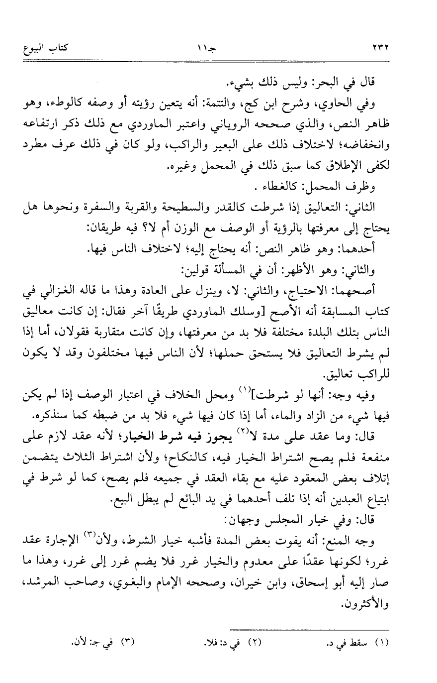 الثاني: التعاليق إذا شرطت كالقدر والسطيحة والقربة والسفرة ونحوها هل يحتاج إلى معرفتها بالرؤية أو الوصف مع الوزن أم لا؟ فيه طريقان: