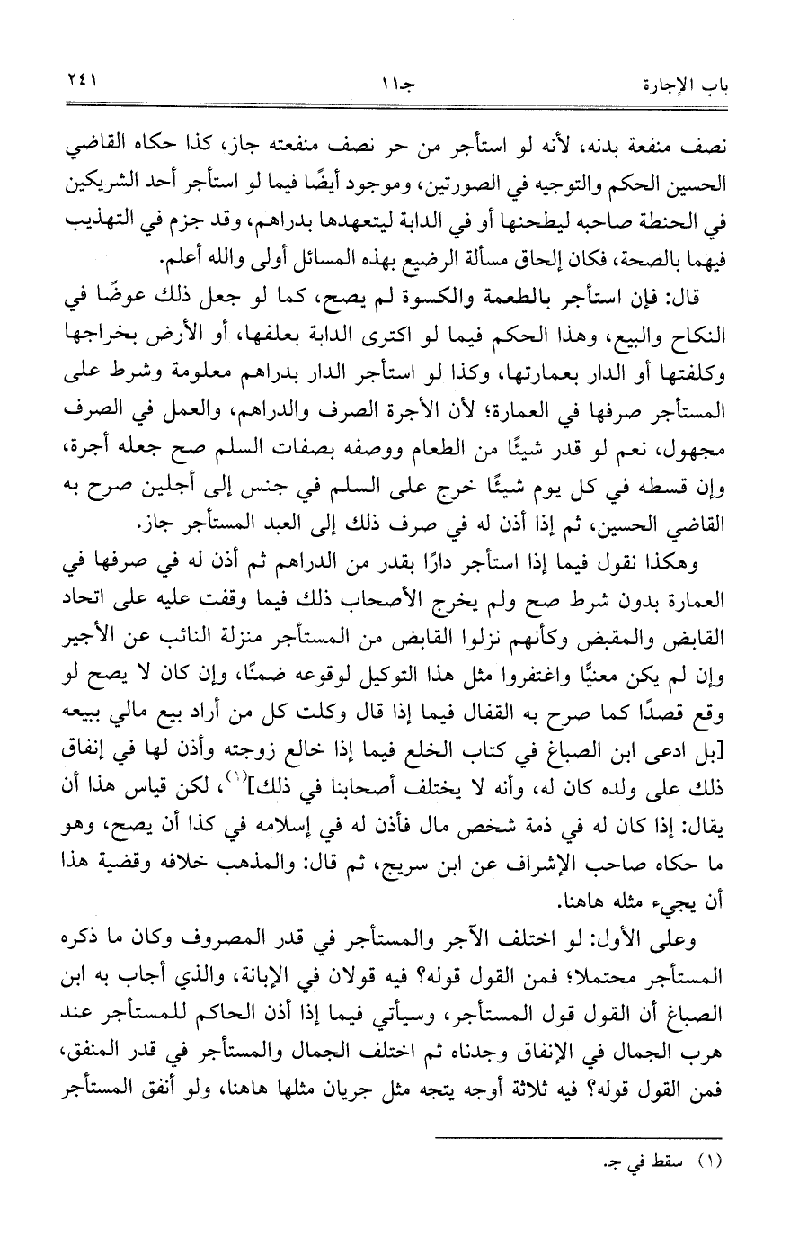 قال: فإن استأجر بالطعمة والكسوة لم يصح، كما لو جعل ذلك عوضا في النكاح والبيع، وهذا الحكم فيما لو اكترى الدابة بعلفها، أو الأرض بخراجها وكلفتها أو الدار بعمارتها، وكذا لو استأجر الدار بدراهم معلومة وشرط على المستأجر صرفها في العمارة؛ لأن الأجرة الصرف والدراهم، والعمل فيا لصرف مجهول، نعم لو قدر شيئاً من الطعام ووصفه بصفات السلم صح جعله أجرة، وإن قسطه في كل يوم شيئاً خرج على السلم في جنس إلى أجلين صرح به القاض الحسين، ثم إذا أذن له في صرف ذلك إلى العبد المستأجر جاز.
