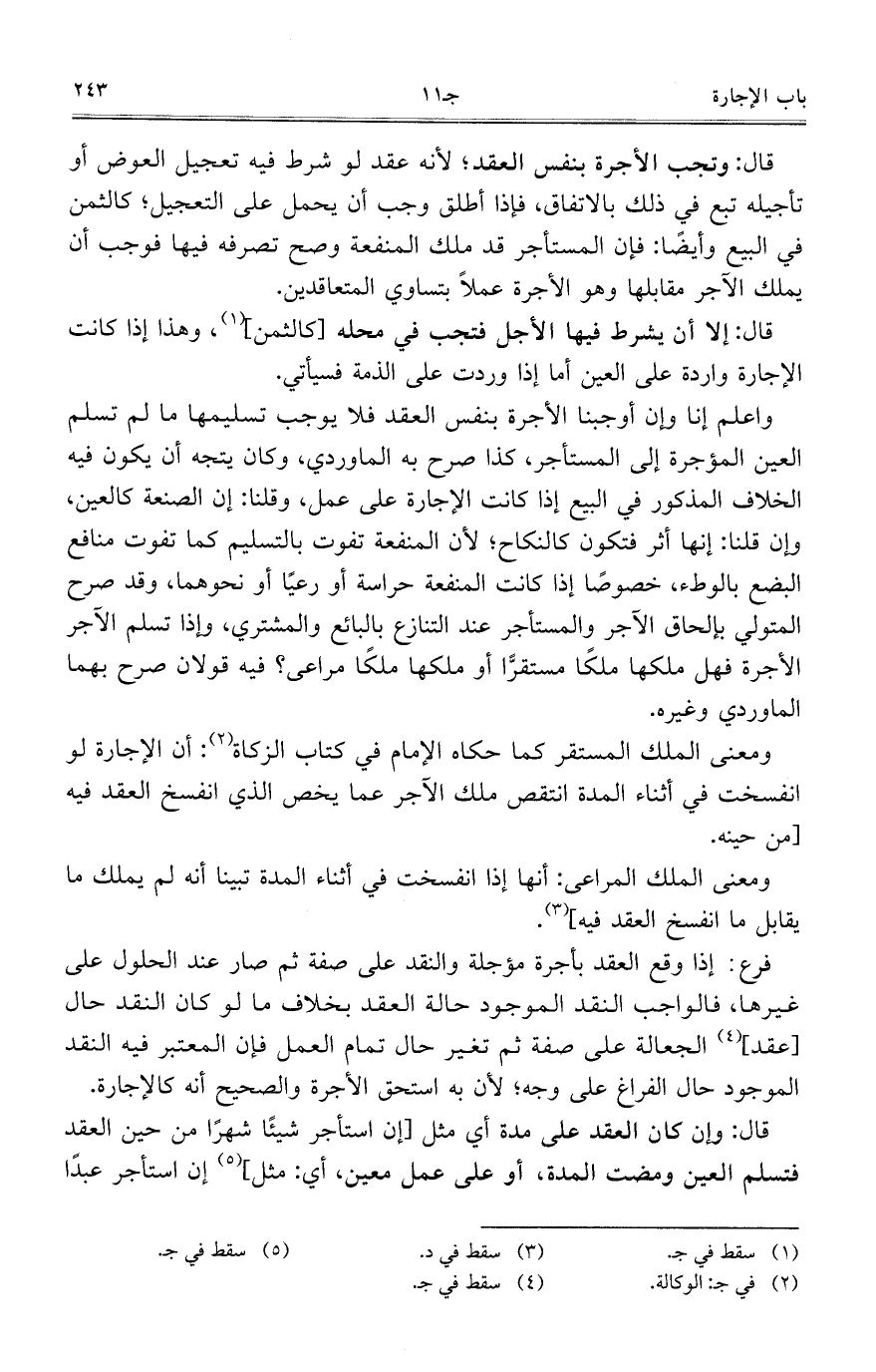 قال: إلا أن يشرط فيها الأجل فتجب في محله [كالثمن]، وهذا إذا كانت الإجارة واردة على العين أما إذا وردت على الذمة فسيأتي.