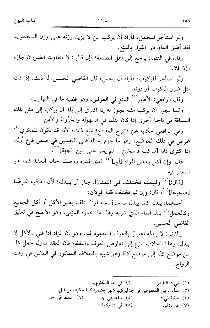 والثاني: لا يبدله اعتباراً بالعرف المعهود فيه، وهو أن الزاد إذا فني بالأكل لا يبدل، وهذا الخلاف نازع إلى تعارض العرف واللفظ؛ فإن العقد تناول حمل كذا من موضع كذا إلى موضع كذا وهو شبيه بالخلاف المذكور في المشي في وقت الرواح.
