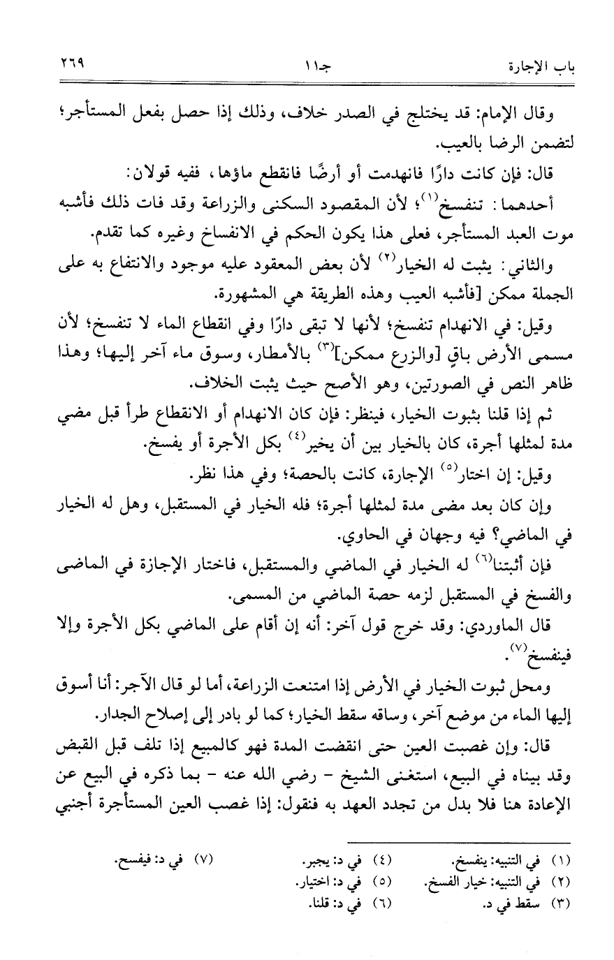 ومحل ثبوت الخيار في الأرض إذا امتنعت الزراعة، أما لو قال الآجر: أنا أسوق إليها الماء من موضع آخر، وساقه سقط الخيار؛ كما لو بادر إلى إصلاح الجدار.