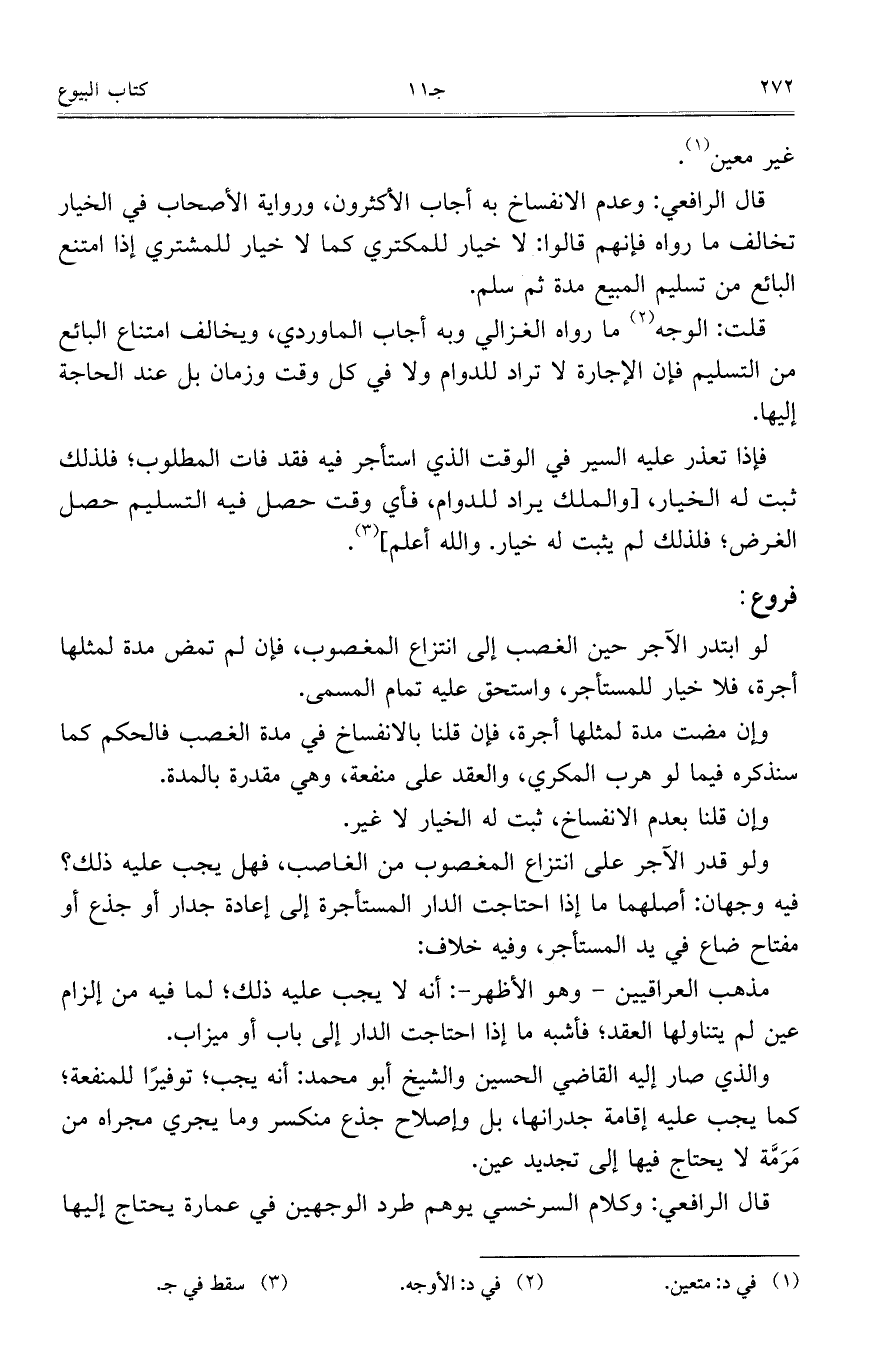 قلت: الوجه ما رواه الغزالي وبه أجاب الماوردي، ويخالف امتناع البائع من التسليم فإن الإجارة لا تراد للدوام ولا في كل وقت وزمان بل عند الحاجة إليها.