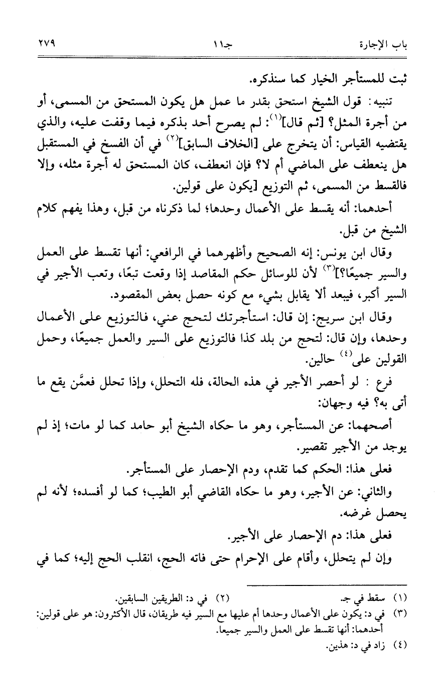 تنبيه: قول الشيخ استحق بقدر ما عمل هل يكون المستحق من المسمى، أو من أجرة المثل؟ [ثم قال]: لم يصرح أحد بذكره فيما وقفت عليه، والذي يقتضيه القياس: أن يتخرج على [الخلاف السابق] في أن الفسخ في المستقبل هل ينعطف على الماضي أم لا؟ فإن انعطف، كان المستحق له أجرة مثله، وإلا فالقسط من المسمى، ثم التوزيع [يكون على قولين.