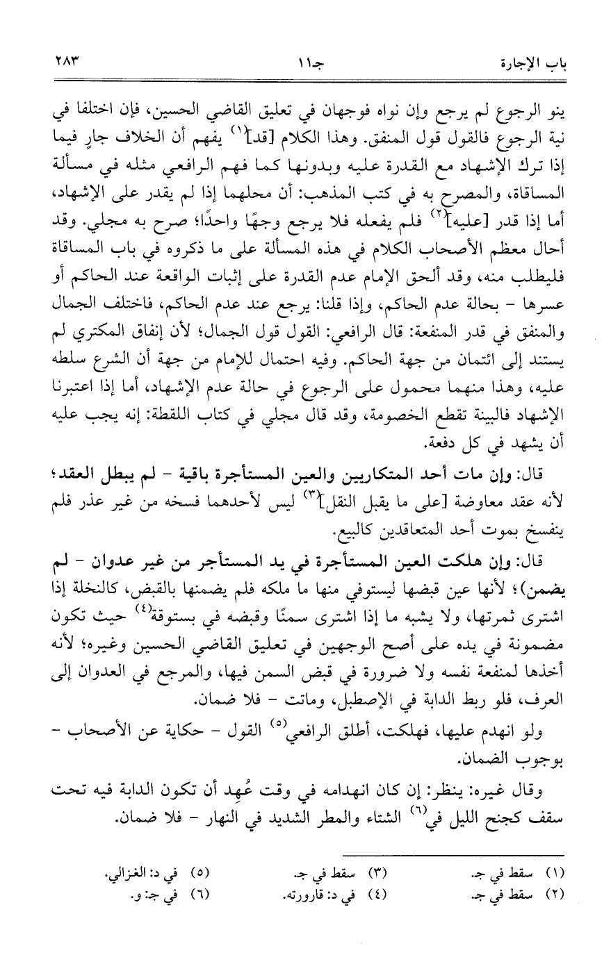 ينو الرجوع لم يرجع وإن نواع فوجهان في تعليق القاضي الحسين، فإن اختلفا في نية الرجوع فالقول قول المنفق. وهذا الكلام [قد] يفهم أن الخلاف جار فيما إذا ترك الإشهاد مع القدرة عليه وبدونها كما فهم الرافعي مثله في مسألة المساقاة، والمصرح به في كتب المذهب: أن محلهما إذا لم يقدر على الإشهاد، أما إذا قدر [عليه] فلم يفعله فلا يرجع وجهاً واحداً؛ صرح به مجلي. وقد أحال معظم الأصحاب الكلام في هذه المسألة على ما ذكروه في باب المساقاة فليطلب منه، وقد ألحق الإمام عدم القدرة على إثبات الواقعة عند الحاكم أو عسرها- بحالة عدم الحاكم، وإذا قلنا: يرجع عند عدم الحاكم، فاختلف الجمال والمنفق في قدر المنفعة: قال الرافعي: القول قول الجمال؛ لأن إنفاق المكتري لم يستند إلى ائتمان من جهة الحاكم. وفيه احتمال للإمام من جهة أن الشرع سلطه عليه، وهذا منهما محمول على الرجوع في حالة عدم الإشهاد، أما إذا اعتبرنا الإشهاد فالبينة تقطع الخصومة، وقد قال مجلي في كتاب اللقطة: إنه يجب عليه أن يشهد في كل دفعة.