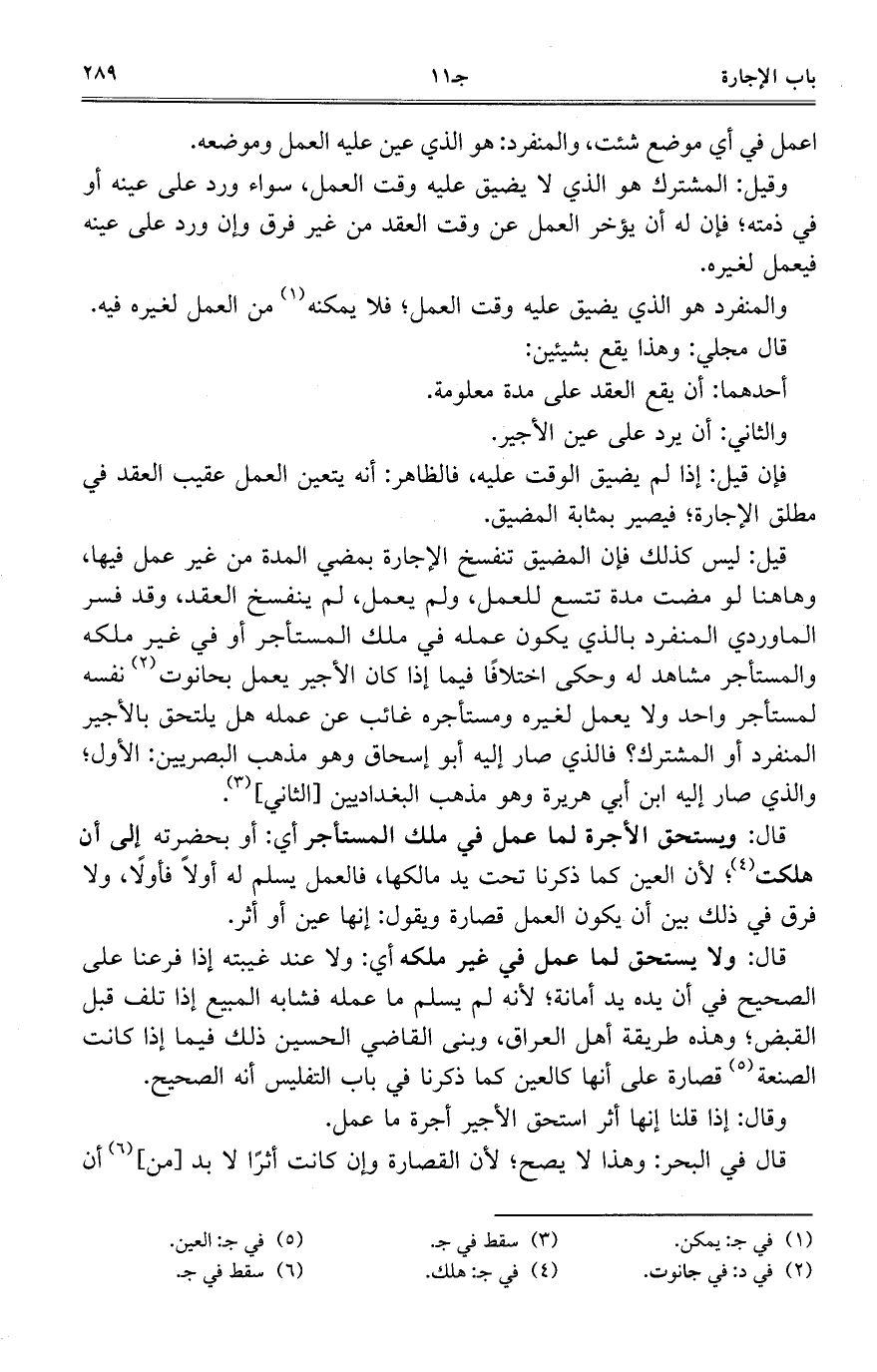 وقيل: المشترك هو الذي لا يضيق عليه وقت العمل، سواء ورد على عينه أو في ذمته؛ فإن له أن يؤخر العمل عن وقت العقد من غير فرق وإن ورد على عينه فيعمل لغيره.