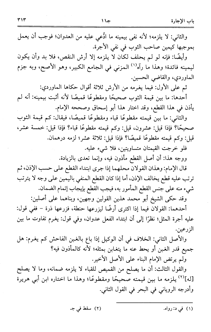 والقول الثالث: أن ما يصلح من القميص للقباء لا يلزمه ضمانه، وما لا يصلح [له] يلزمه ما بين قيمته صحيحاً ومقطوعاً؛ وهذا ما اختاره ابن أبي هريرة وأدرجه الروياني في البحر في القول الثاني.
