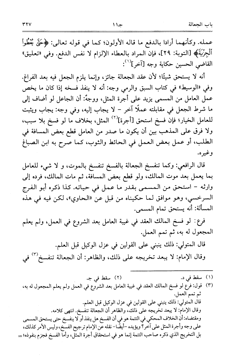 قال الرافعي: وكما تنفسخ الجعالة بالفسخ تنفسخ بالموت، ولا شيء للعامل بما يعمل بعد موت المالك، ولو قطع بعض المسافة، ثم مات المالك، فرده إلى وارثه- استحق من المسمى بقدر ما عمل في حياته. كذا ذكره أبو الفرج السرخسي، وهو موافق لما حكيناه من قبل عن "الحاوي"، لكن فيه في هذه المسألة: أنه يستحق تمام المسمى.