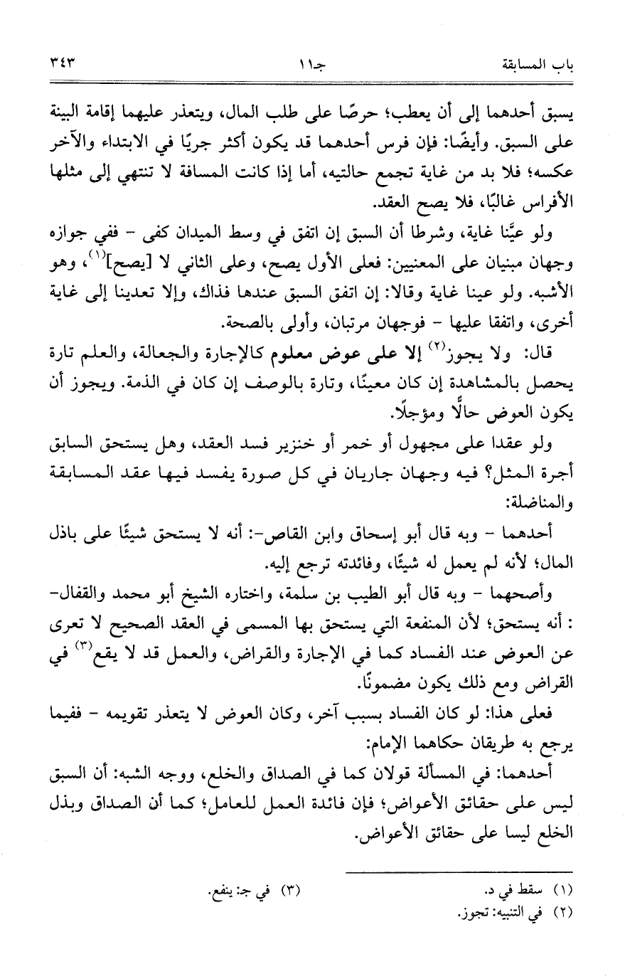 أحدهما: في المسألة قولان كما في الصداق والخلع، ووجه الشبه: أن السبق ليس على حقائق الأعواض؛ فإن فائدة العمل للعامل؛ كما أن الصداق وبذل الخلع ليسا على حقائق الأعواض.