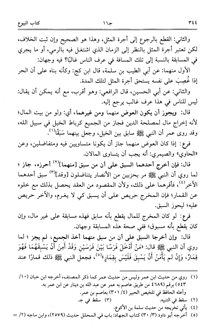 والثاني: القطع بالرجوع إلى أجرة المثل، وهذا هو الصحيح وإن ثبت الخلاف، لكن تعتبر أجرة المثل بالنظر إلى الزمان الذي اشتغل فيه بالرمي، أو ما يجري في المسابقة بالنسبة إلى تلك المسافة في عرف الناس غالباً؟ فيه وجهان: