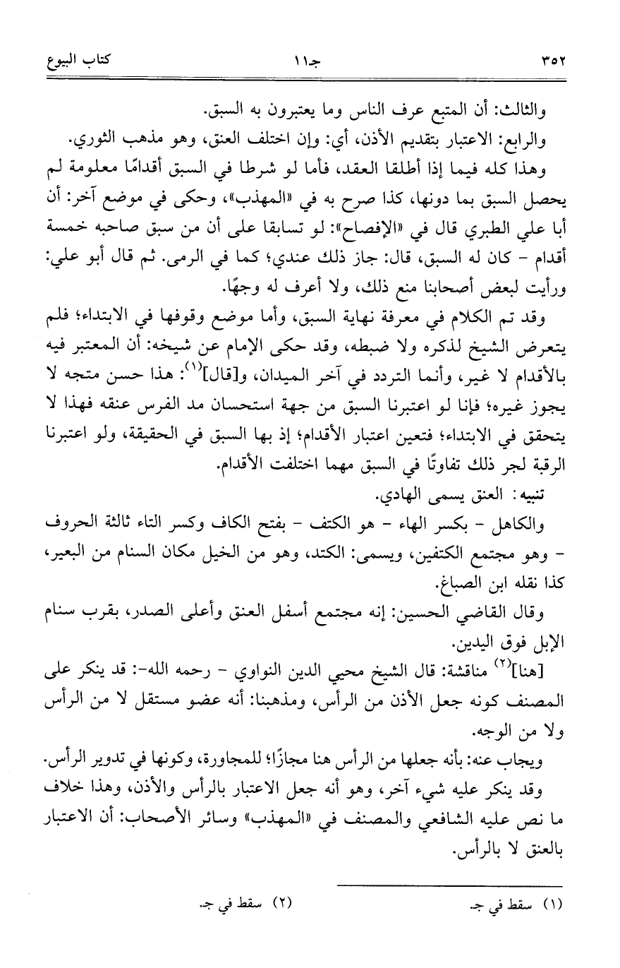 وقد ينكر عليه شيء آخر، وهو أنه جعل الاعتبار بالرأس والأذن، وهذا خلاف ما نص عليه الشافعي والمصنف في "المهذب" وسائر الأصحاب: أن الاعتبار بالعنق لا بالرأس.