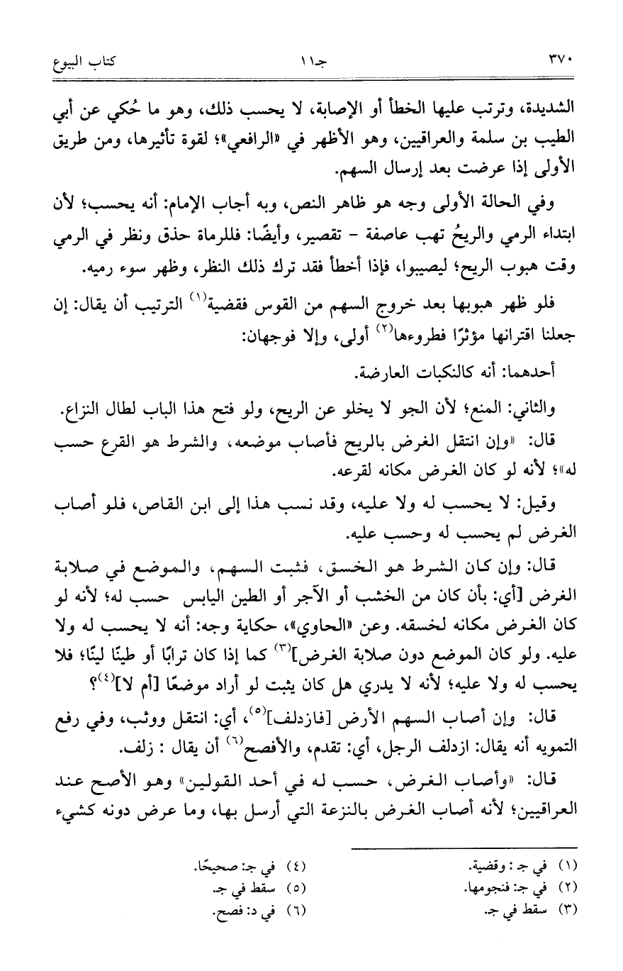 قال: "وأصاب الغرض، حسب له في أحد القولين" وهو الأصح عند العراقيين، لأنه أصاب الغرض بالنزعة التي أرسل بها، وما عرض دونه كشيء