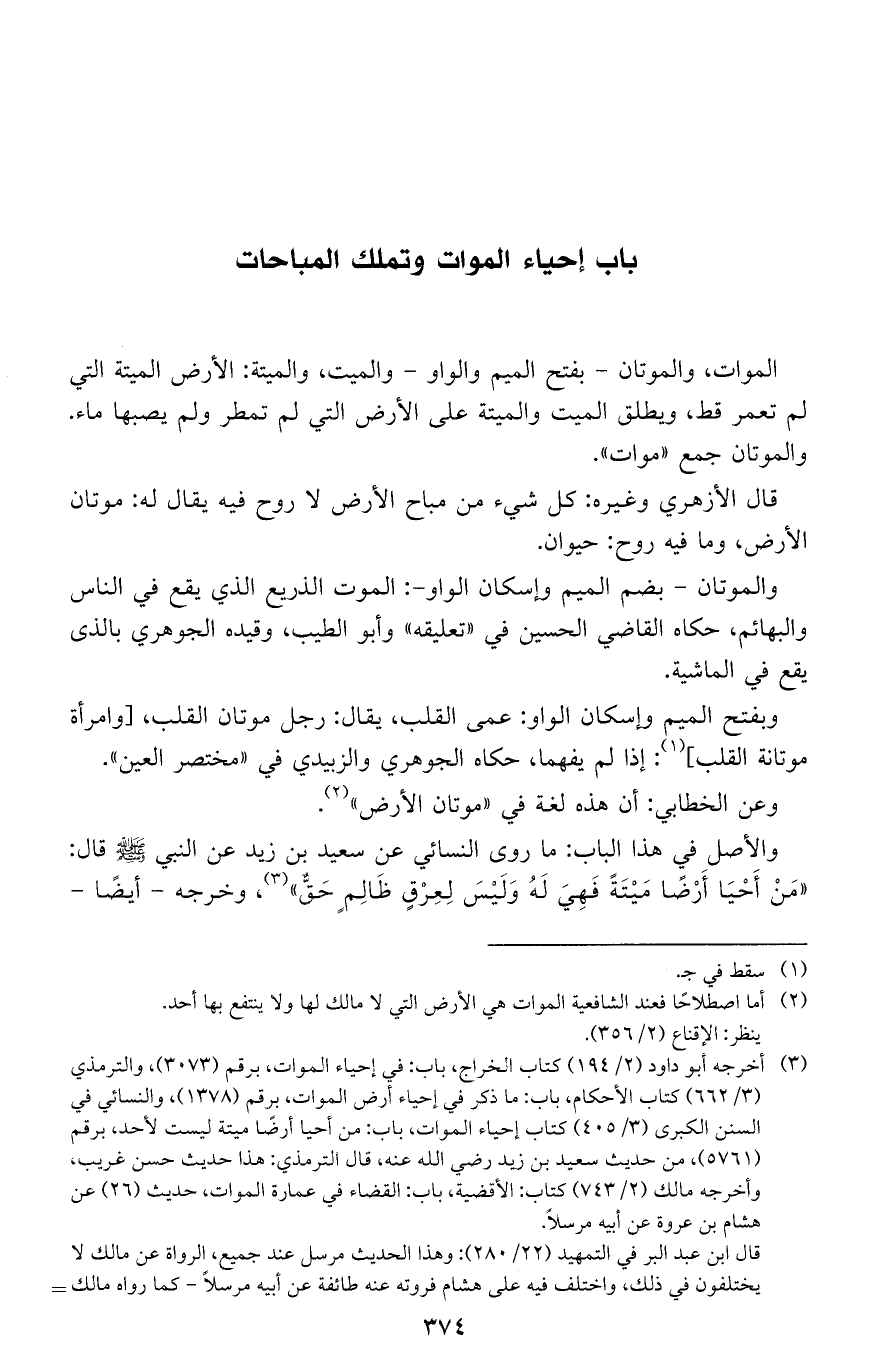 قال الأزهري وغيره: كل شيء من مباح الأرض لا روح فيه يقال له: موتان الأرض، وما فيه روح: حيوان.